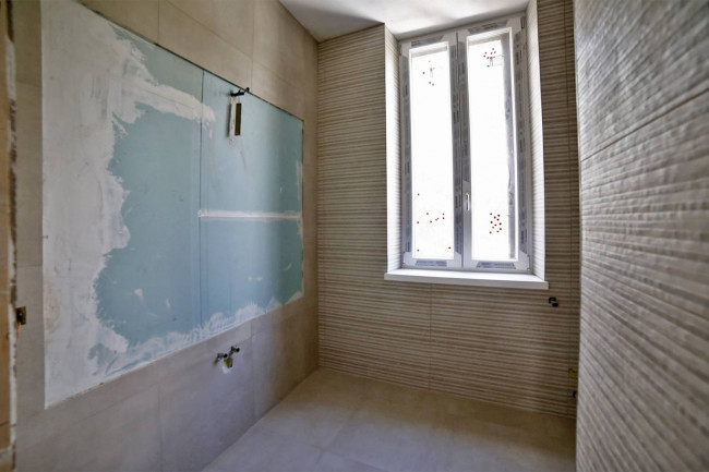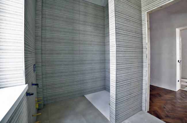 Bagno 1 con pavimento e rivestimento ceramico 60X60 e 45X 120 H. 290 e mobili a disegno;