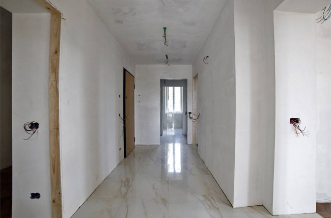 Corridoio ingresso, cucicna, disimpegno notte con pavimentazione ceramica 60X60;